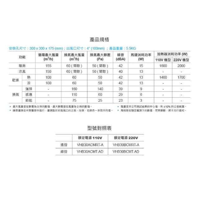 台達電子VHB30BCMRT-A 豪華型300系列浴室暖風機(DELTA台達暖風機 遙控機種,220V)
