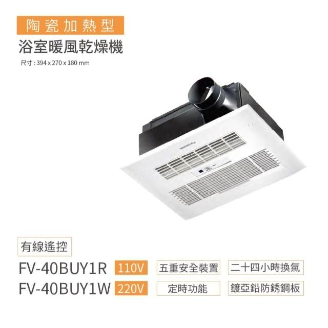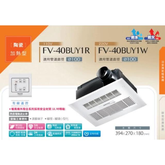 Panasonic 國際牌FV-40BUY1W 浴室換氣暖風機(Panasonic國際牌大風量設計220V有線面板暖風機)