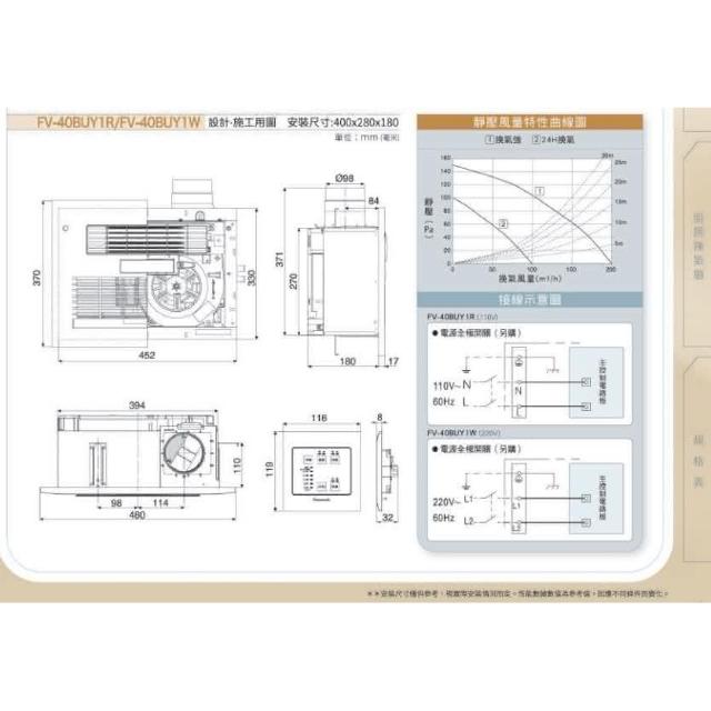 Panasonic 國際牌FV-40BUY1W 浴室換氣暖風機(Panasonic國際牌大風量設計220V有線面板暖風機)
