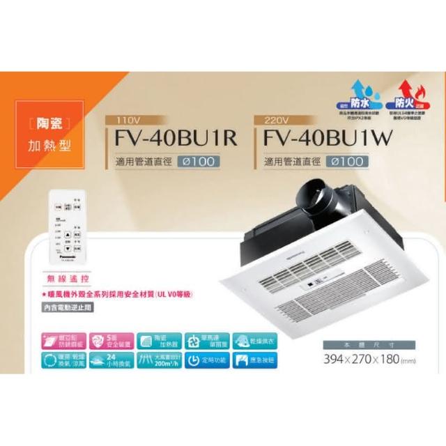 Panasonic 國際牌FV-40BU1W 浴室換氣暖風機(Panasonic國際牌大風量設計220V無線遙控暖風機)