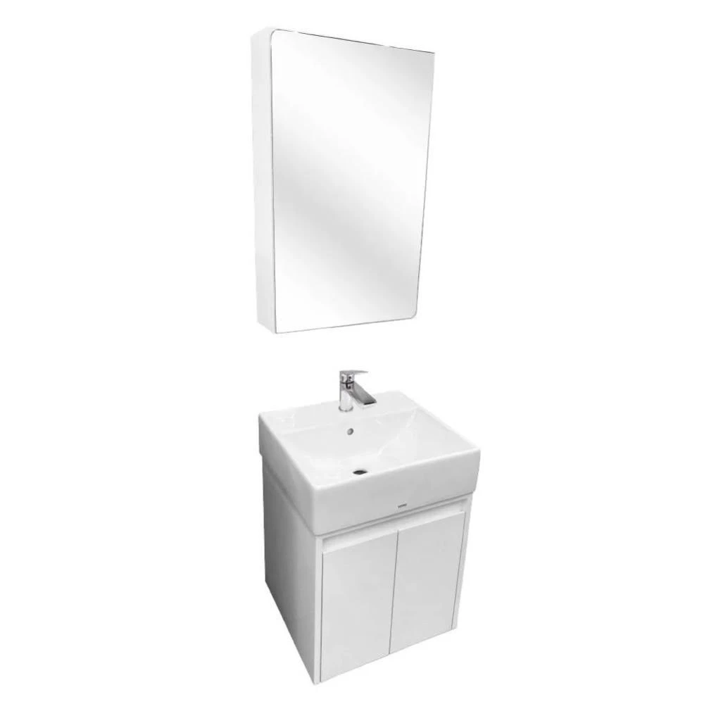 TOTO『洗樂適中港店』 全台最佛衛浴 50公分浴櫃3件組 PVC浴櫃 面盆龍頭 鏡櫃 超值衛浴三件套