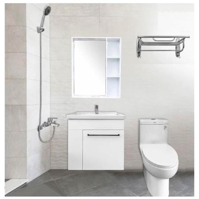 CERAX 洗樂適『洗樂適中港店』衛浴六件式套組 單體馬桶+61CM面盆浴櫃+單槍龍頭+沐浴龍頭+放衣架+開放鏡櫃