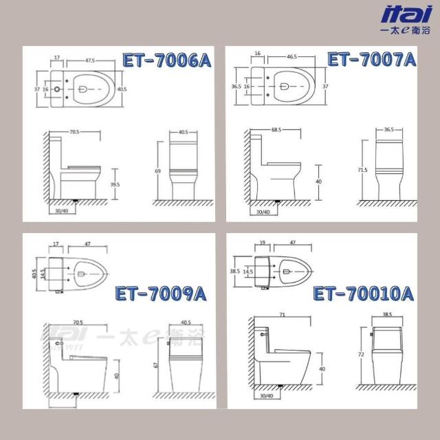 ITAI 一太ITAL 一太e衛浴 單體馬桶 龍捲噴射虹吸式 ET-7007A(單體馬桶)管距30/40CM