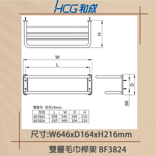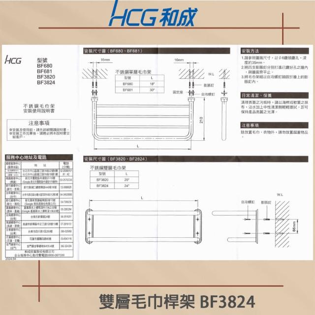 HCG 和成不鏽鋼雙層毛巾桿架 置衣架 毛巾架(BF3824 不含安裝)