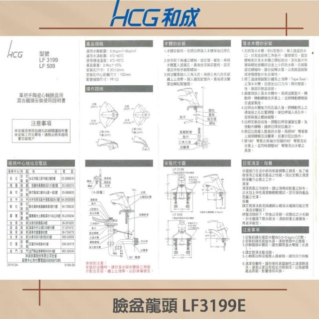 HCG 和成臉盆龍頭 冷熱龍頭 三孔 水龍頭 浴室 省水龍頭(LF3199E 不含安裝)