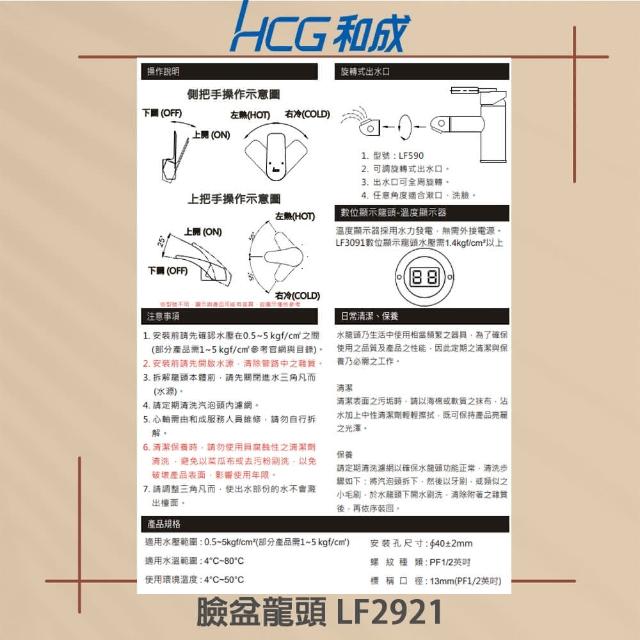HCG 和成面盆龍頭 臉盆龍頭 單孔龍頭(LF2921 不含安裝)