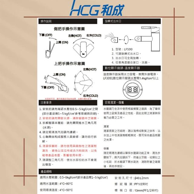 HCG 和成臉盆龍頭 混合龍頭 單孔面盆龍頭(LF510E 不含安裝)