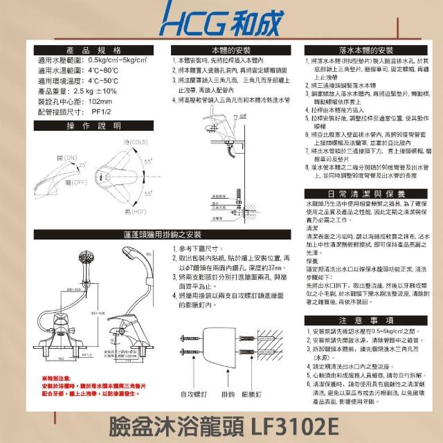 HCG 和成臉盆用4” 臉盆龍頭 兩用水龍頭(LF3102E 不含安裝)
