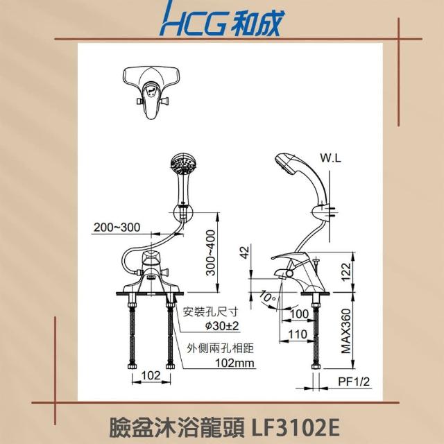 HCG 和成臉盆用4” 臉盆龍頭 兩用水龍頭(LF3102E 不含安裝)