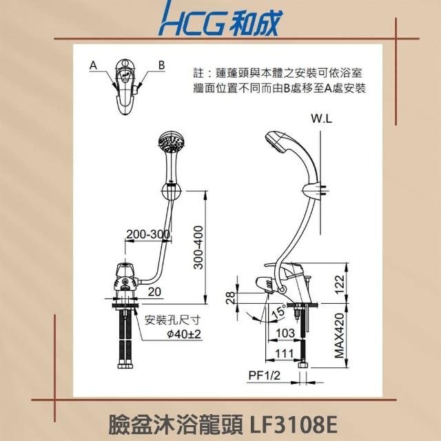 HCG 和成臉盆沐浴龍頭 附蓮蓬頭 兩用龍頭 面盆龍頭(LF3108E 不含安裝)