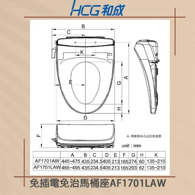 HCG 和成冷水洗淨雙噴嘴免插電 免插電馬桶蓋 緩降 AF1701L 取代 CF8447NX CF634N TC400CVK-1