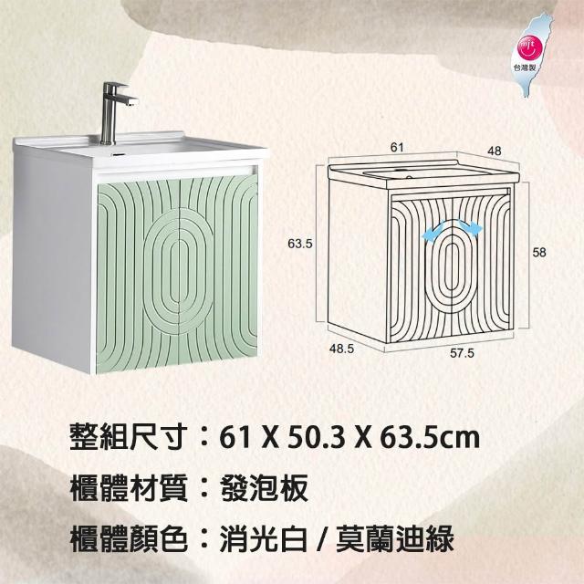 台灣製造 莫蘭迪綠 61公分 浴櫃組 洗手台 面盆 不含龍頭 發泡版浴櫃 收納櫃 浴室用洗手台