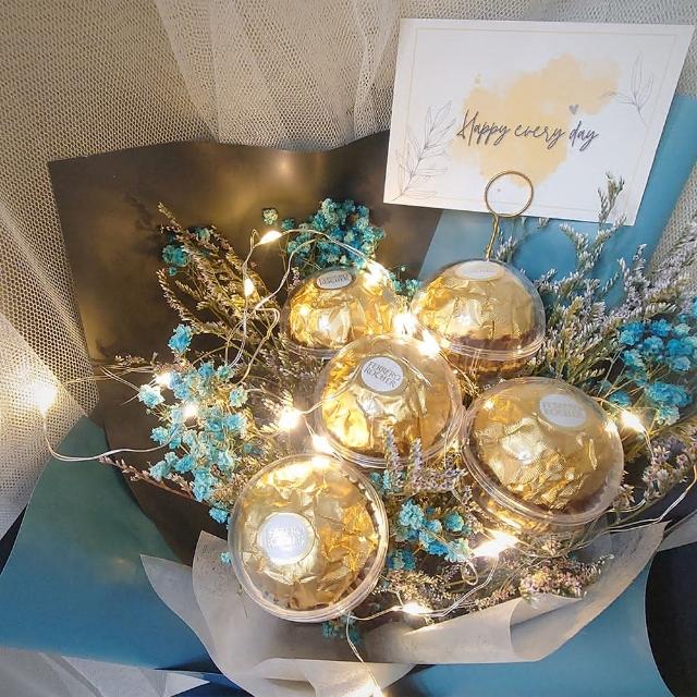 KIRA與花花藝ALWAYS金莎花束/五顆/米黃(乾燥花花束 情人節花束 畢業花束 生日 七夕情人節 金莎)