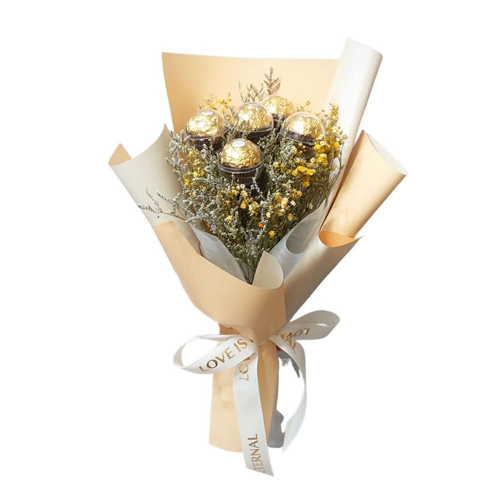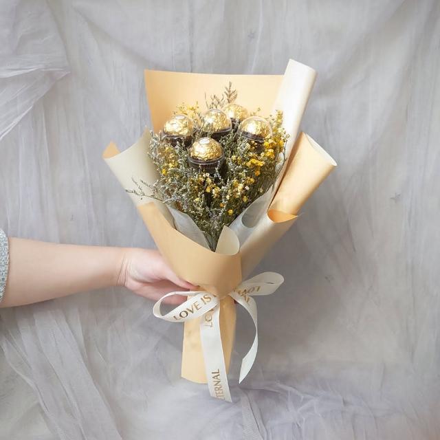 KIRA與花花藝ALWAYS金莎花束/五顆/米黃(乾燥花花束 情人節花束 畢業花束 生日 七夕情人節 金莎)