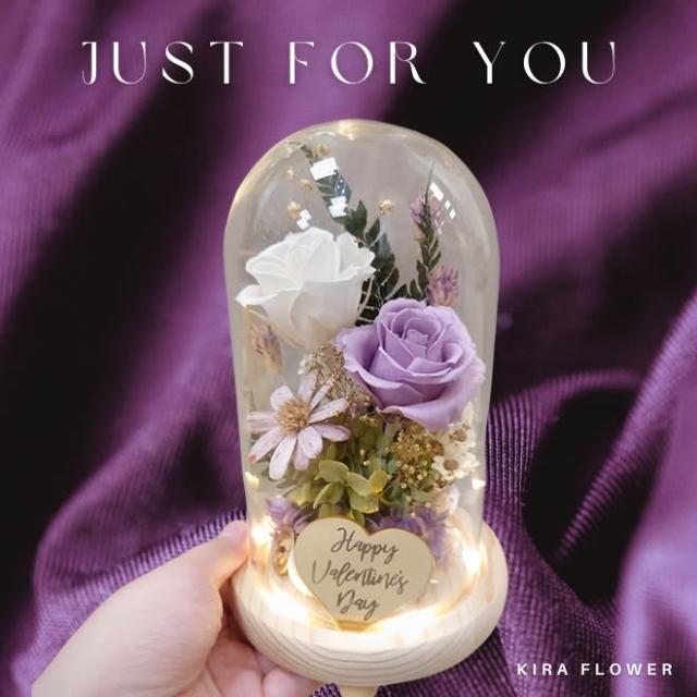 KIRA與花花藝 莫奈的紫 · 永生花LED玻璃罩夜燈/生日禮物/情人節禮物/送禮/永生花/開幕/母親節幕 喬遷)