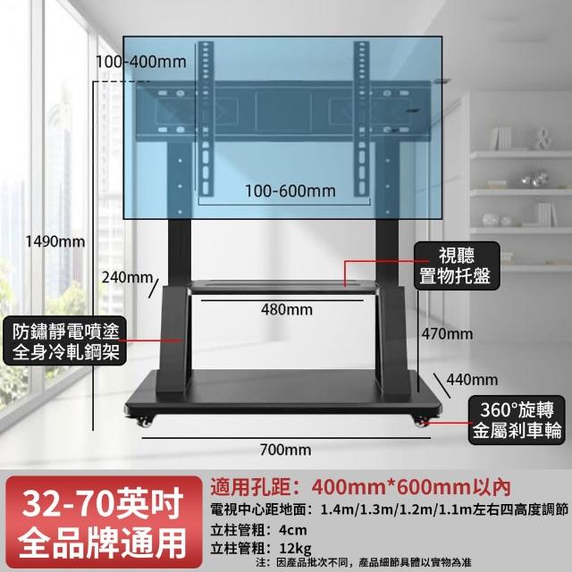 可移動電視架/落地式電視架-通用32-70吋-雙層置物盤(電視立架 顯示器移動架 熒幕支架)