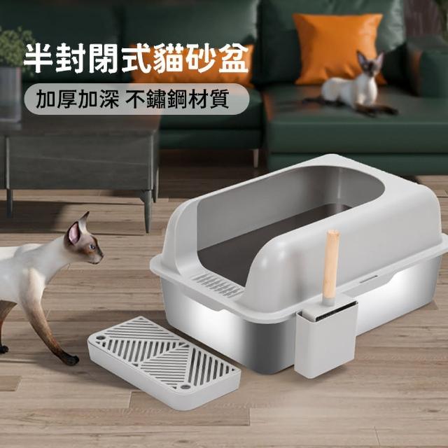 ChocoPet 趣寵大貓砂盆 半封閉式 不鏽鋼 易清洗 防漏砂(半開式貓砂盆 貓廁所 加厚貓砂盆 大空間貓砂盆)