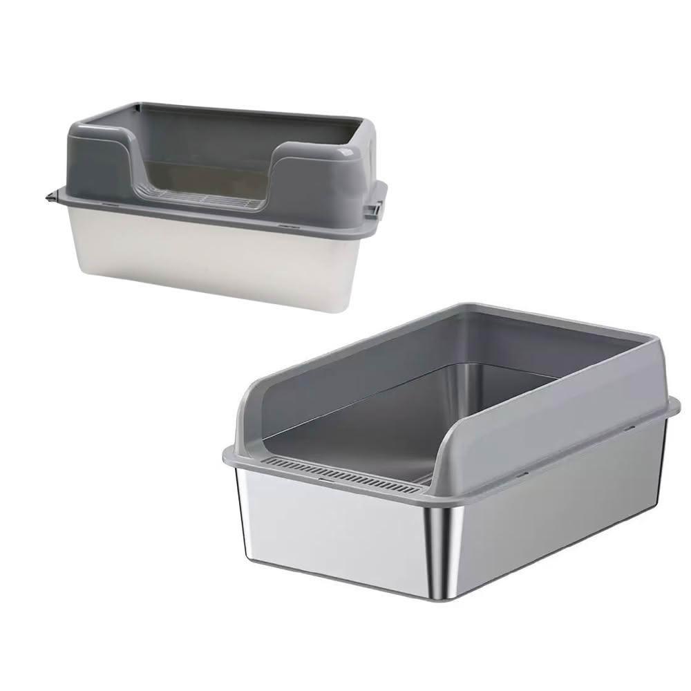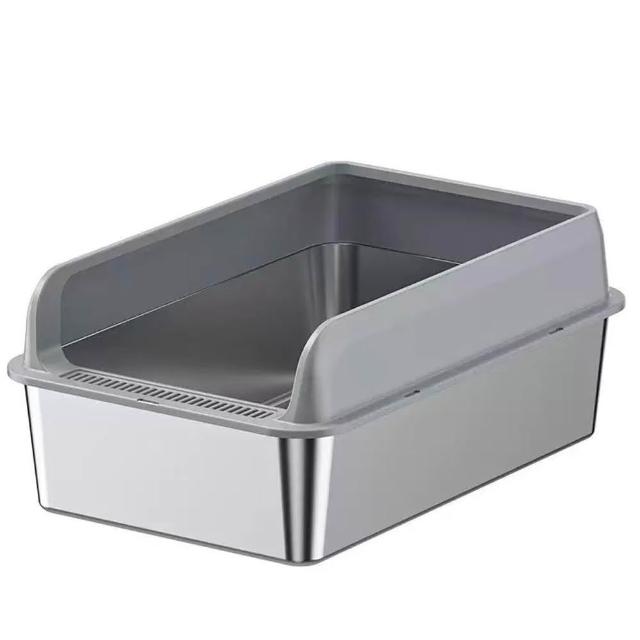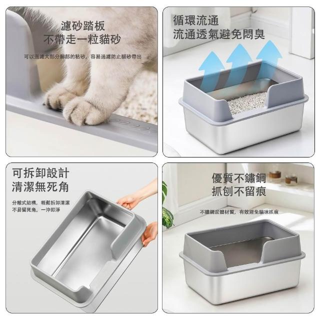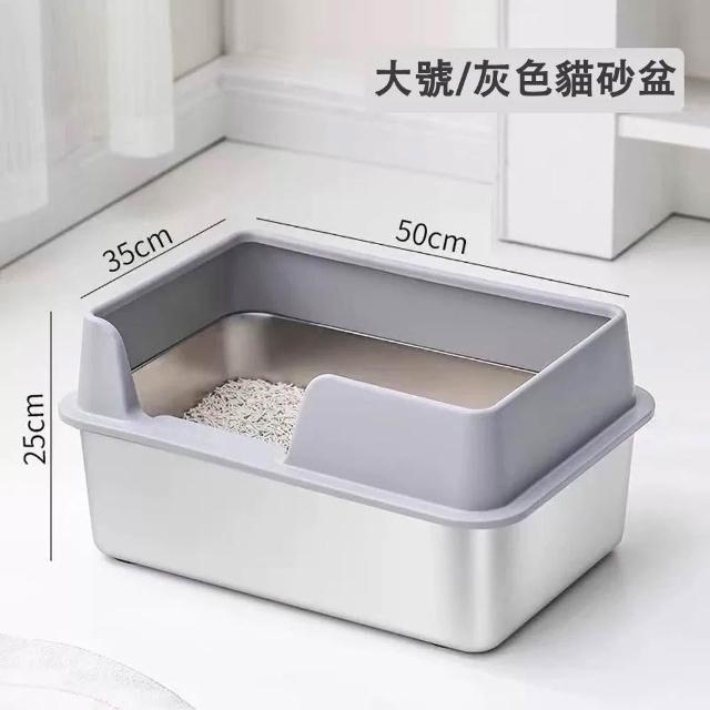 ChocoPet 趣寵半封閉不鏽鋼貓砂盆 加高圍欄易清理(大貓砂盆 大號貓砂盆 貓廁所)