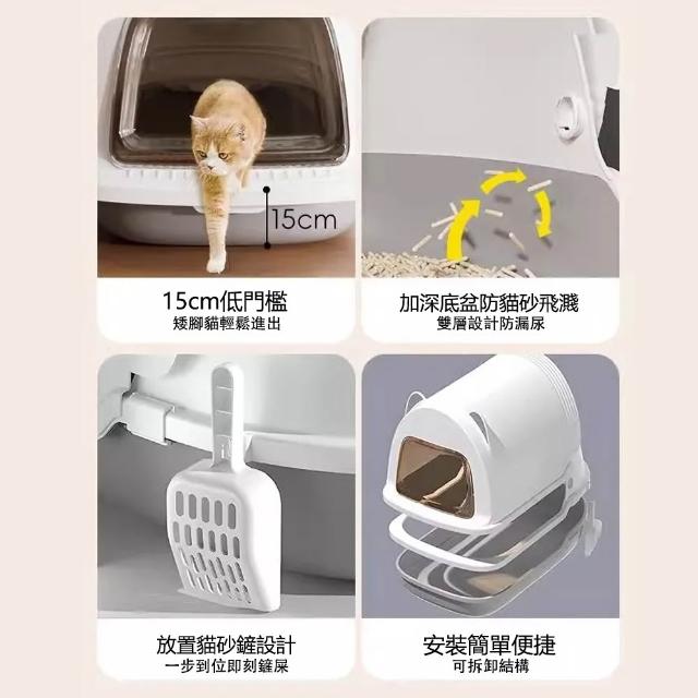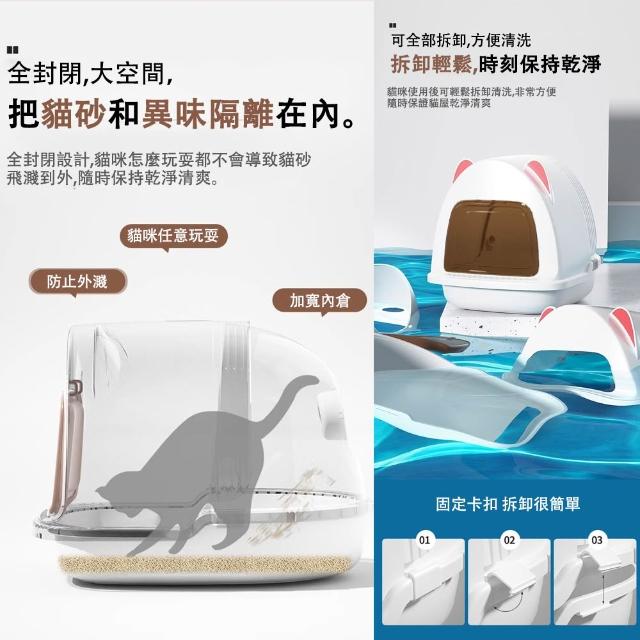 ChocoPet 趣寵貓耳超大號封閉式貓砂盆 除臭淨味器 防外溅(大貓砂盆 大號貓砂盆 特大號貓砂盆 貓廁所 大空間貓砂盆)