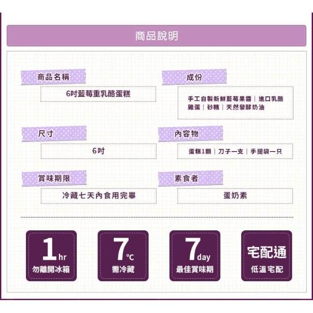 6吋藍莓重乳酪蛋糕(乳酪蛋糕 藍莓 甜點 野餐 彌月 團購 伴手禮)