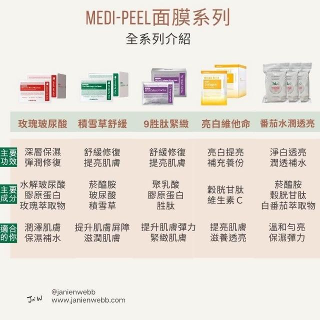MEDI-PEEL玫瑰玻尿酸膠原蛋白面膜/積雪草舒緩精華面膜/9胜肽緊緻面膜 50入/單盒