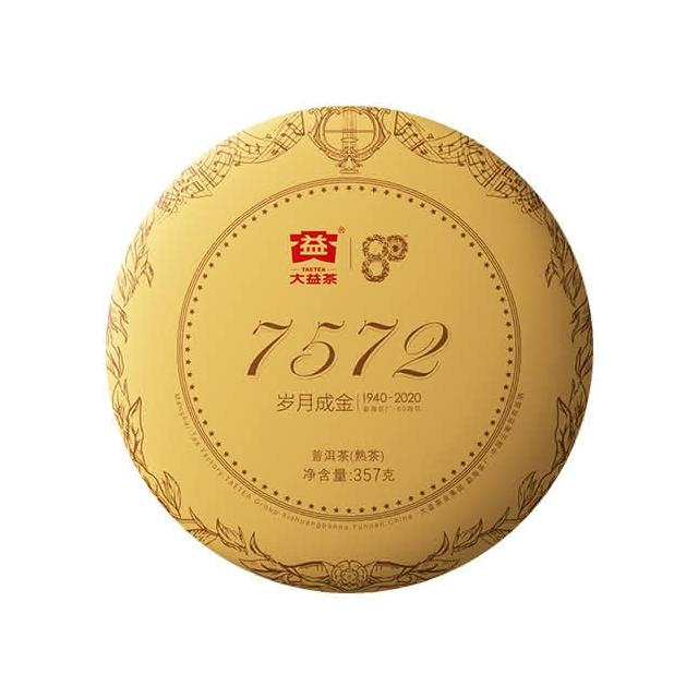 大益茶大益普洱熟茶 357g 7572數字茶 80週年紀念版 歲月成金 2001「茶有大益」