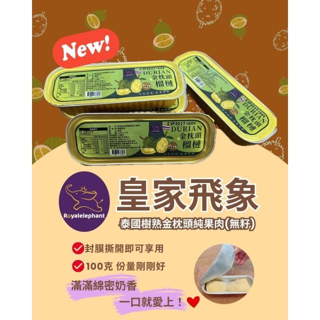 皇家飛象-泰國鮮凍金枕頭榴槤果肉(無籽)100克/盒