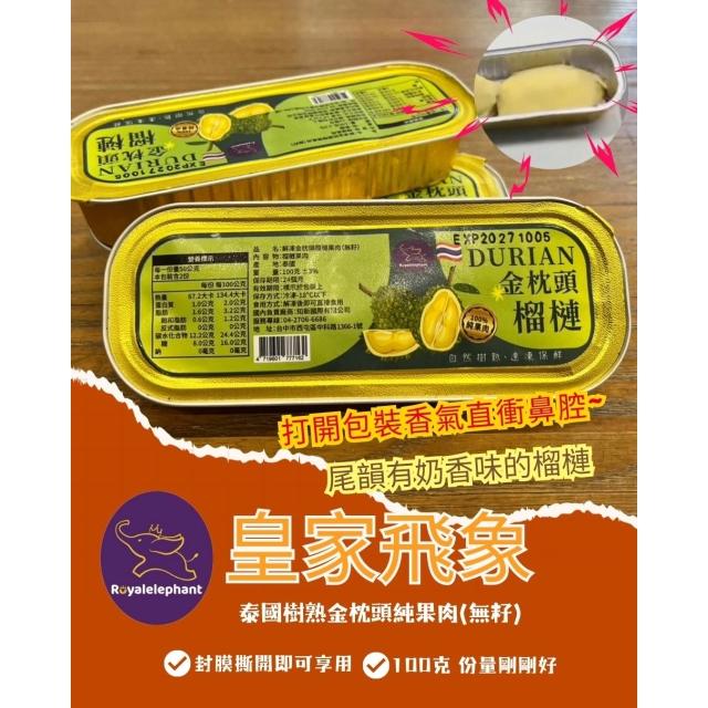 皇家飛象-泰國鮮凍金枕頭榴槤果肉(無籽)100克/盒