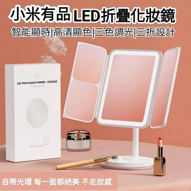 小米有品佐敦朱迪三面貝殼智能補光LED折疊化妝鏡 Type-C充電 補妝鏡 梳妝鏡 美妝鏡 化妝鏡 折疊鏡子
