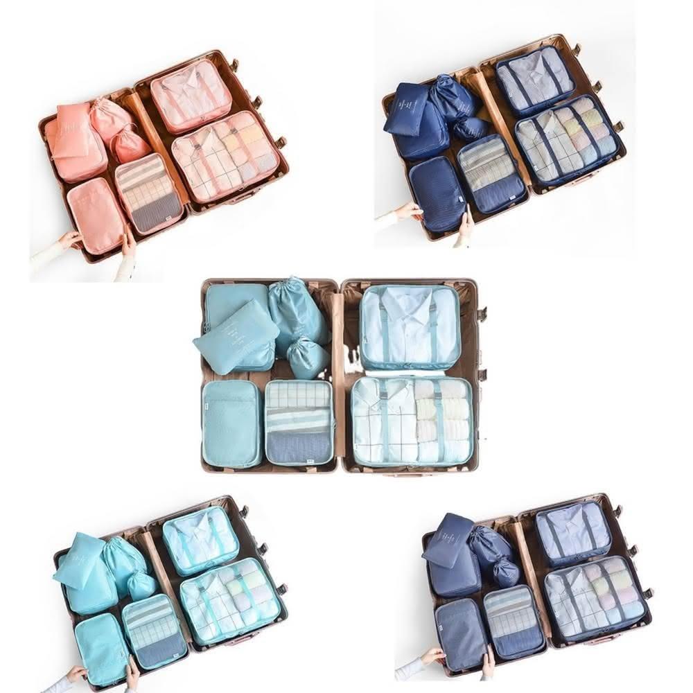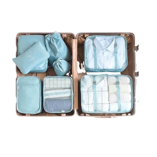 旅行防水收納袋 8件組 旅行收納袋 旅行袋 盥洗收納包 衣物分類袋 壓縮袋 包中包 收納袋 衣物收納袋