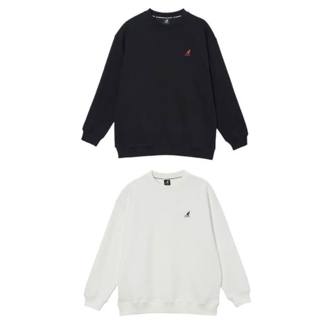 KANGOL中性 白 黑 刺繡LOGO 經典 圓領t 大學T 64551031
