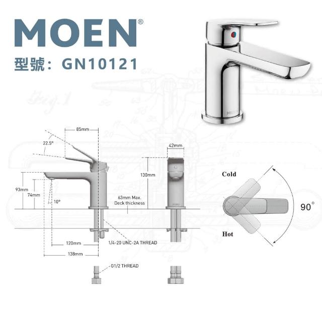 MOEN摩恩衛浴 單孔單把手 鉻色面盆龍頭彈跳落水頭(GN10121)