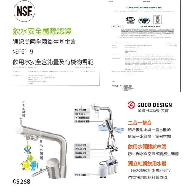LOLAT 羅力立式單槍RO廚房無鉛水龍頭 冷熱自來水+冷淨水(D5268LF)