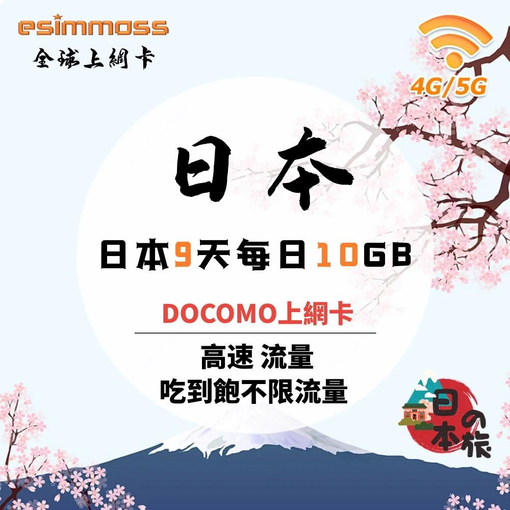 esimmoss日本上網卡 9天 90GB 上網 吃到飽 日本網卡 流量無限 吃到飽 DOCOMO 4G高速上網 softbank