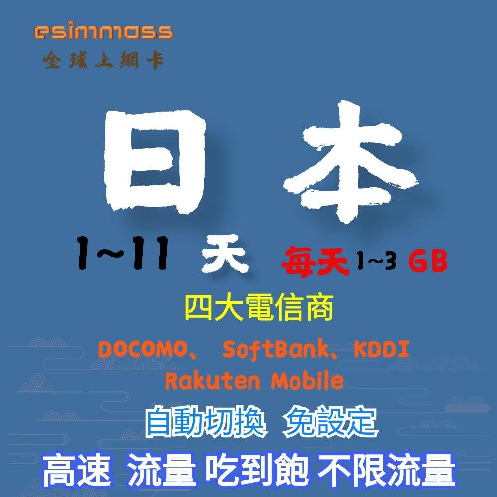 esimmoss日本 上網卡 1~11天 1GB~22GB DOCOMO Softbank 樂天 KDDI 四大電信商共享 支持 eSIM 自動切換 免設定 高速 吃到飽 5G網速 上網 SIM卡 (日本上網卡 吃到飽 流量無限 DOCOMO softbank KDDI 5G高速上網 日本 日本上網 日本網卡 japan