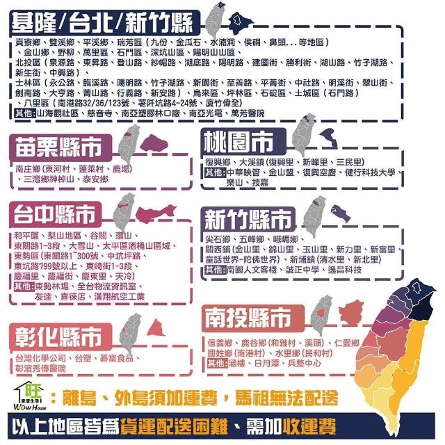 - 商店所提供的產品配送區域範圍目前僅限台灣本島。