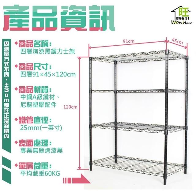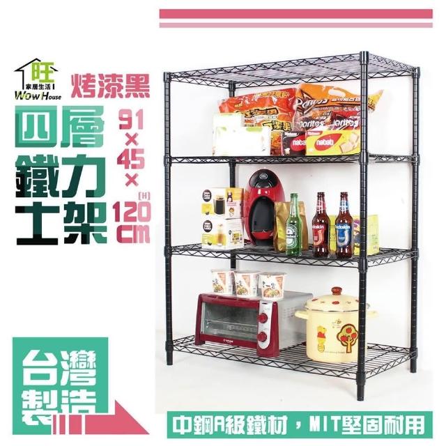 旺家居生活烤黑 91x45x120cm四層架《免運費》置物架 波浪架 收納架 工作車 收納櫃 展示架 鐵力士架《旺家居生活》