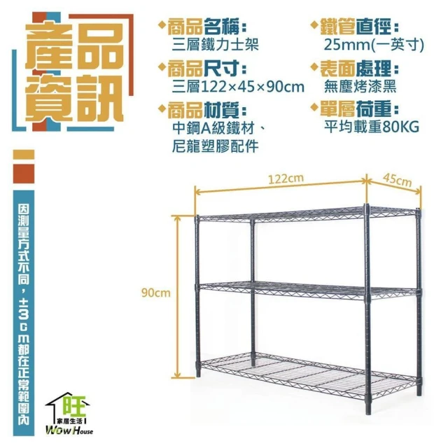 旺家居生活鐵力士架 烤黑122x45x90cm三層架《免運費》置物架 烤黑鐵架 波浪架 收納架 收納櫃《旺家居生活》