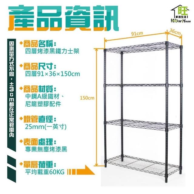 旺家居生活烤黑 91x36x150cm四層架《免運費》展示架 收納櫃 置物架 波浪架 鍍鉻鐵架 收納架 鐵力士架《旺家居生活》