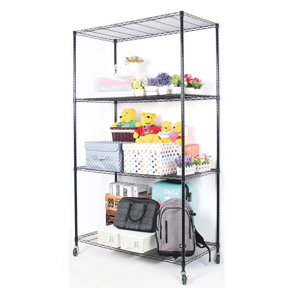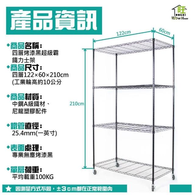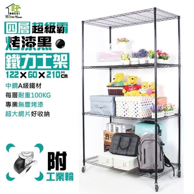 旺家居生活烤漆黑122x60x210cm四層架附工業輪《免運費》鐵力士架 置物架 烤黑鐵架 波浪架 收納架 收納櫃《旺家居生活》