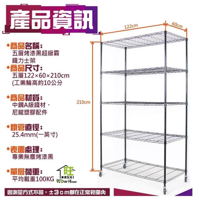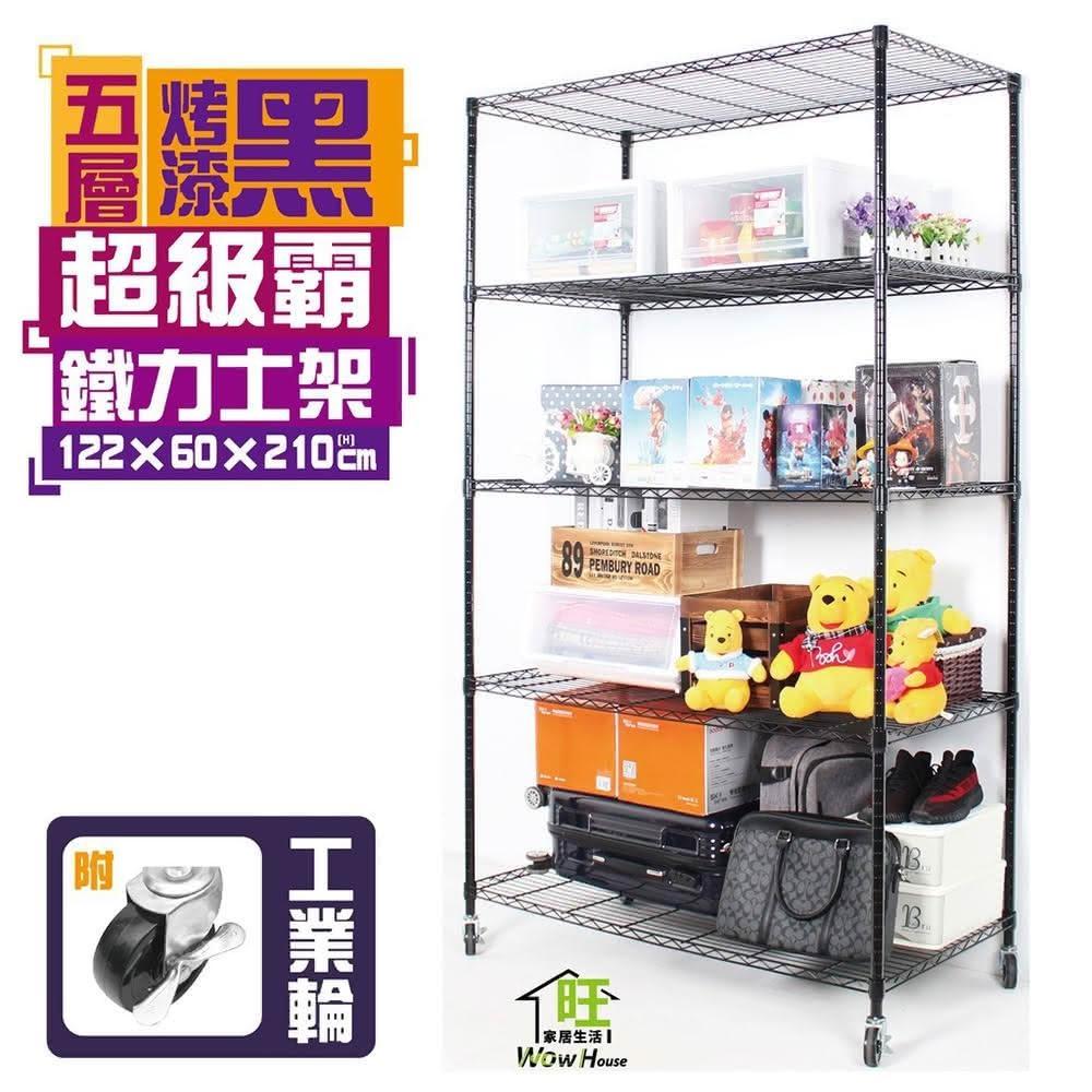 旺家居生活烤漆黑122x60x210cm五層架附工業輪《免運費》鐵力士架 置物架 烤黑鐵架 波浪架 收納架 收納櫃《旺家居生活》