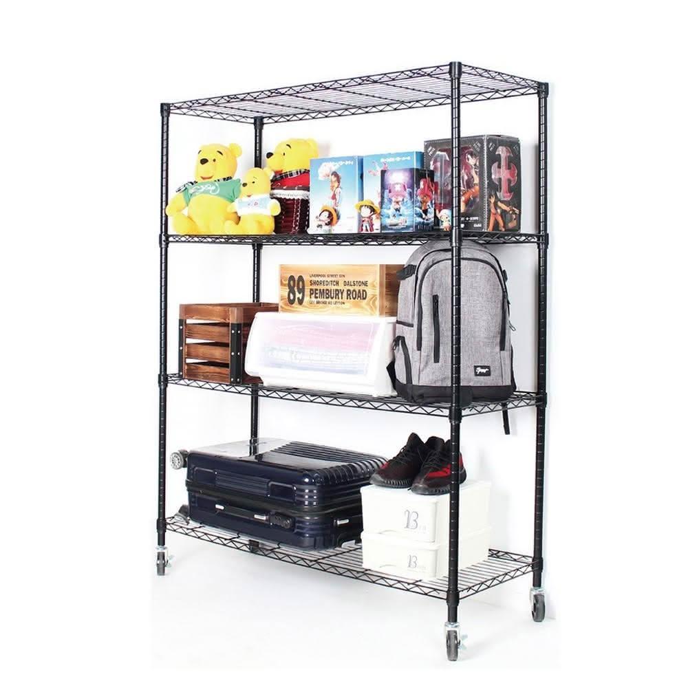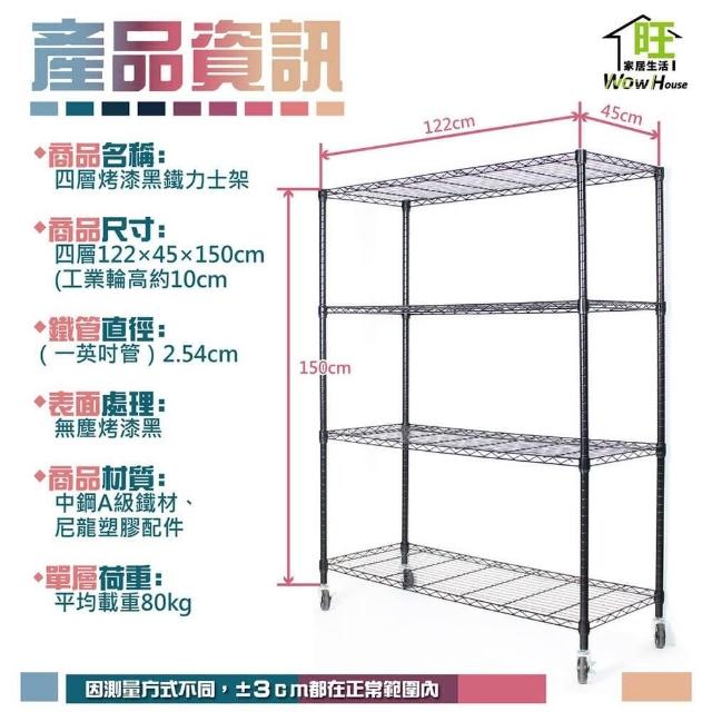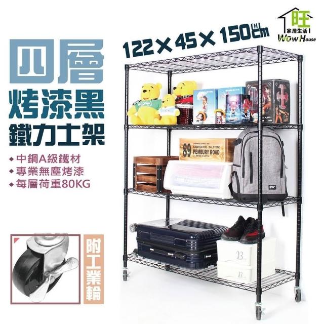 旺家居生活鐵力士架 烤黑122x45x150cm四層架 附工業輪《免運費》置物架 烤黑鐵架 波浪架 收納架 收納櫃《旺家居生活》