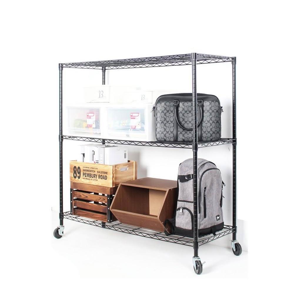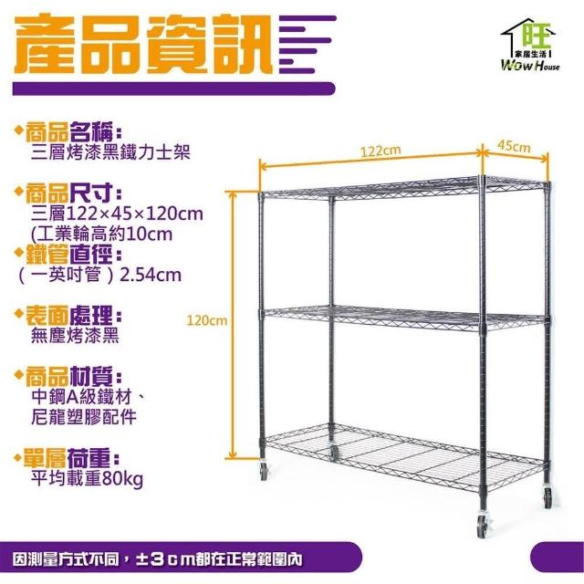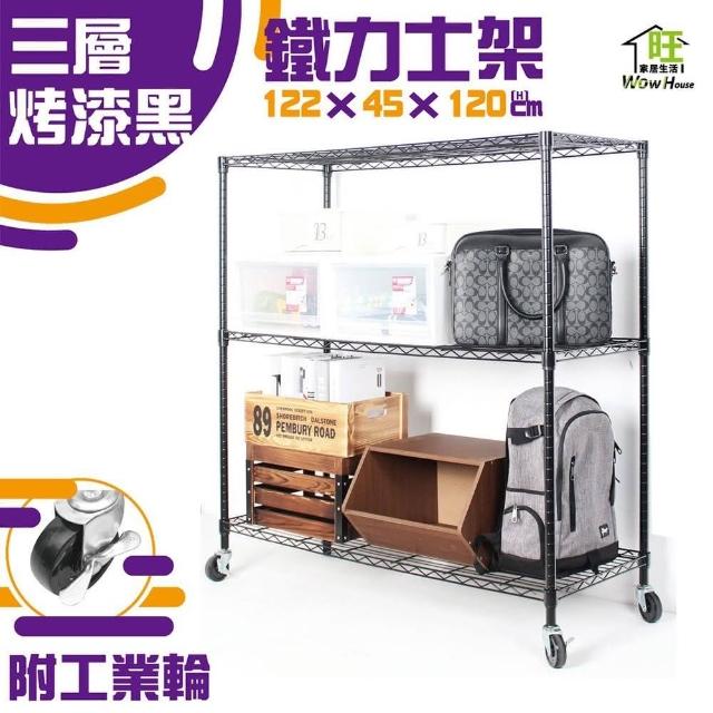 旺家居生活鐵力士架 烤黑122x45x120cm三層架 附工業輪《免運費》置物架 烤黑鐵架 波浪架 收納架 收納櫃《旺家居生活》