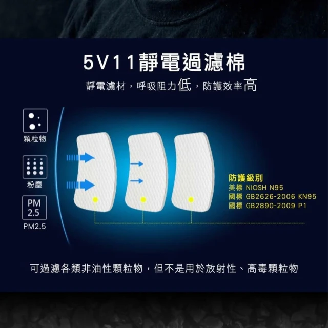- 呼吸阻力低,防護效率高