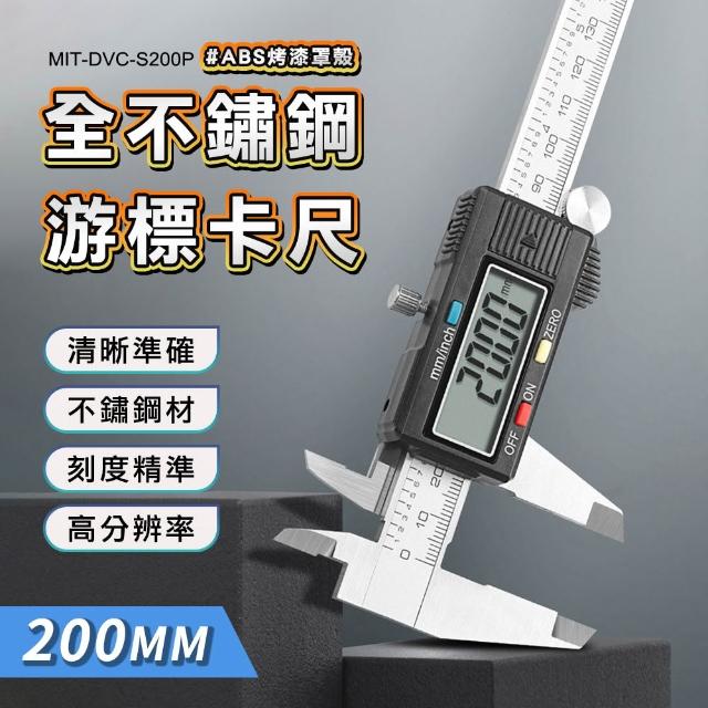 游標尺 全不鏽鋼遊標卡尺200mm ABS烤漆錶頭 丈量工具 厚度規 軸承測量 標本量測 深度尺 測量儀器 165-DVC-S200P