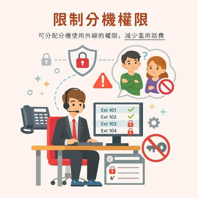- 限制撥出權限,避免濫用話費