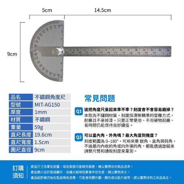 不鏽鋼角度尺 不鏽鋼量角尺 切斜角尺 量角工具 165-AG150 量角器 圓盤量角器 測量角度器 角度校正尺
