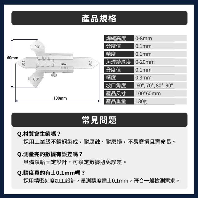 多功能焊道規 縫量測規 焊縫規 焊道測量儀 厚度量規 坡口檢測規 165-WLG+ 坡口角度規 角焊縫厚度規 焊縫高度規