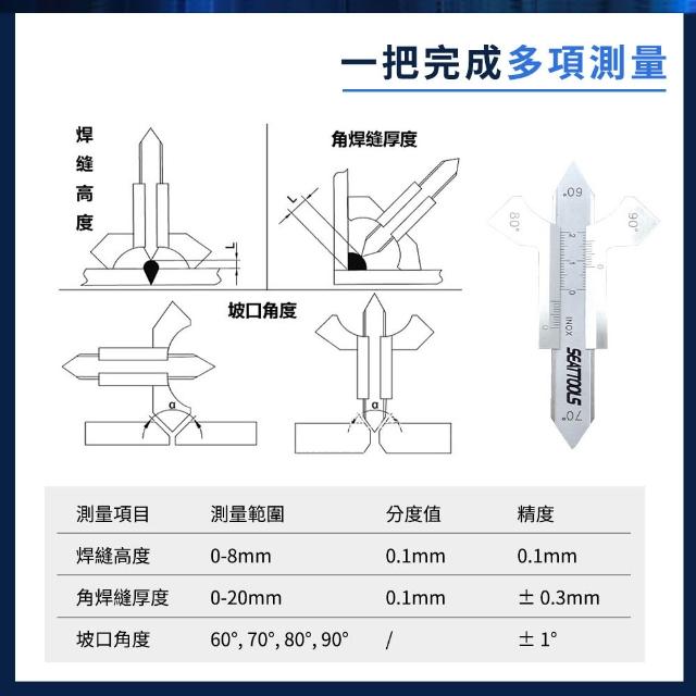 多功能焊道規 縫量測規 焊縫規 焊道測量儀 厚度量規 坡口檢測規 165-WLG+ 坡口角度規 角焊縫厚度規 焊縫高度規