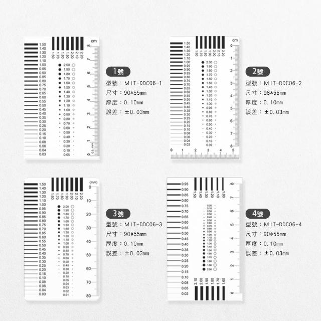 1號到4號各10張 縫隙檢測尺 裂縫尺 菲林尺 裂縫量規 刮痕尺 污點面積測定尺 污點判定尺 165-DDC06-40